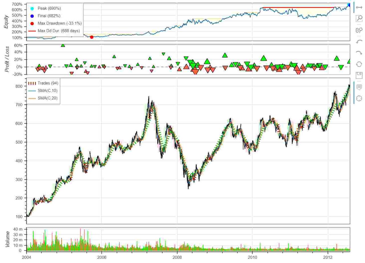 Backtesting.pyとやらは日本語の記事が多いらしいので使ってみることにした。